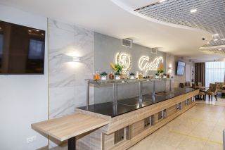 Гостиничный комплекс, расположенный на небольшой благоустроенной территории, состоит из 6-ти этажного жилого корпуса и 2-х этажного развлекательного. Обширный номерной фонд рассчитан на единовременное размещение более 230 человек. Гостям предлагаются комфортабельные номера категории Стандарт, Студия, Люкс и Апартаменты. Просторные и светлые номера оснащены санузлом и ванной, оборудованы необходимой мебелью и техникой - в каждом имеется телевизор, холодильник, В повышенных категориях имеется фен.